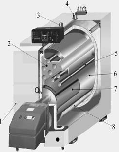 вторинний випромінювач, вогнева труба, ККД, шкідливі викиди, жаротрубні котли.