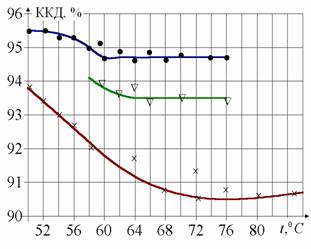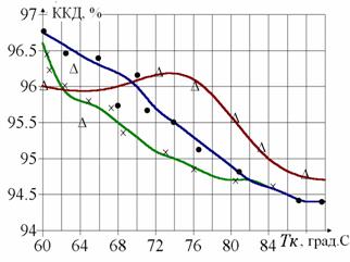 значений КПД до 5,0%, изменения температуры, CO до 77,5% и NОx до 52%,