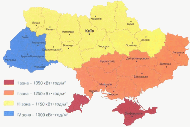 В целом территория Украины относится к зоне средней интенсивности солнечной